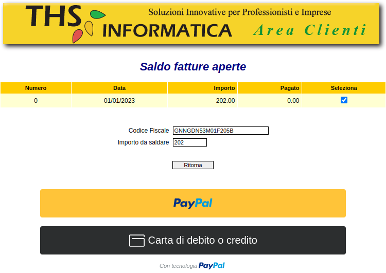 - è possibile effetturare il pagamento con PayPal o con Carta di Credito.